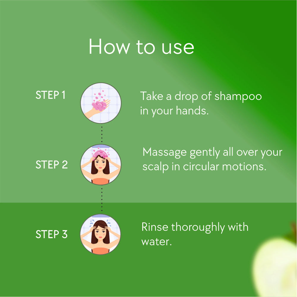 Directions: Wet hair thoroughly. Apply a generous amount of shampoo, lather, and gently massage into your scalp and hair. Rinse thoroughly. For optimal results, follow with our Apple Cider Conditioner.