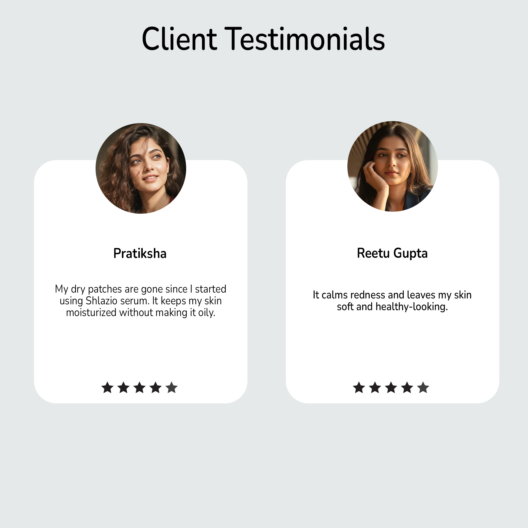 My dry patches are gone since I started using Shlazio serum. It keeps my skin moisturized without making it oily.