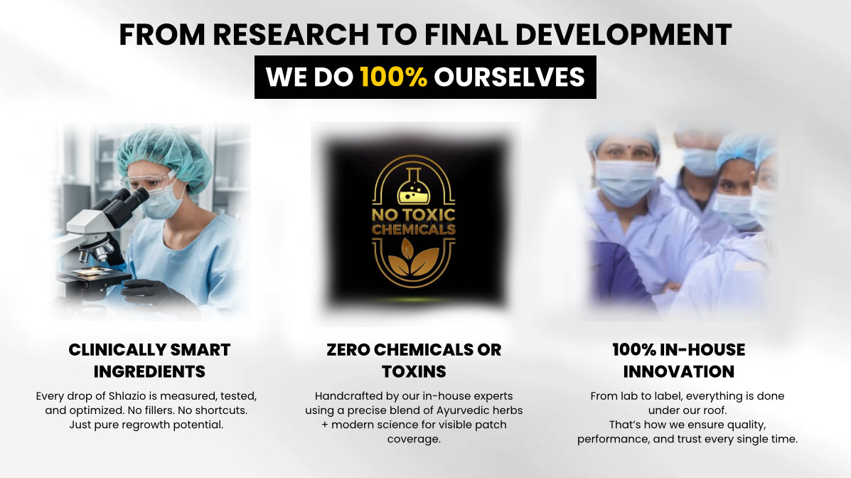 At Shlazio, we believe hair is more than just strands, its your crown of confidence. That’s why our Ayurvedic solutions are crafted to treat every type of hair loss naturally, whether it’s patchy scalp spots, thinning hair, or beard and eyebrow baldness. With Shlazio, you don’t just grow hair you grow back your self-belief.