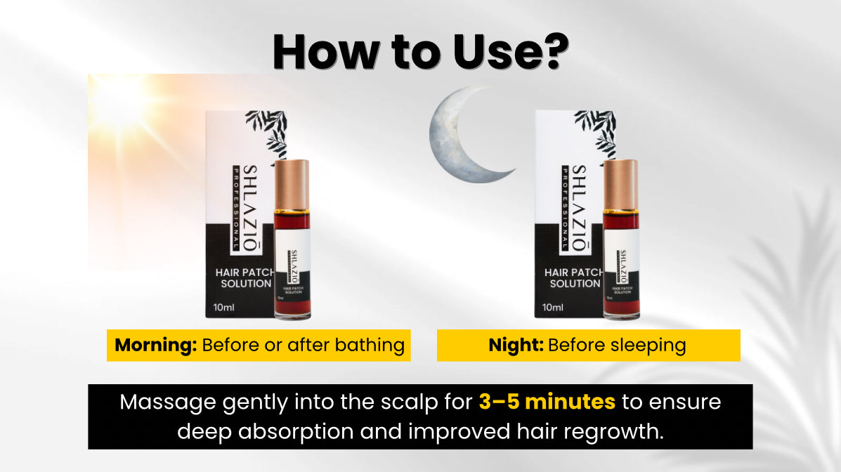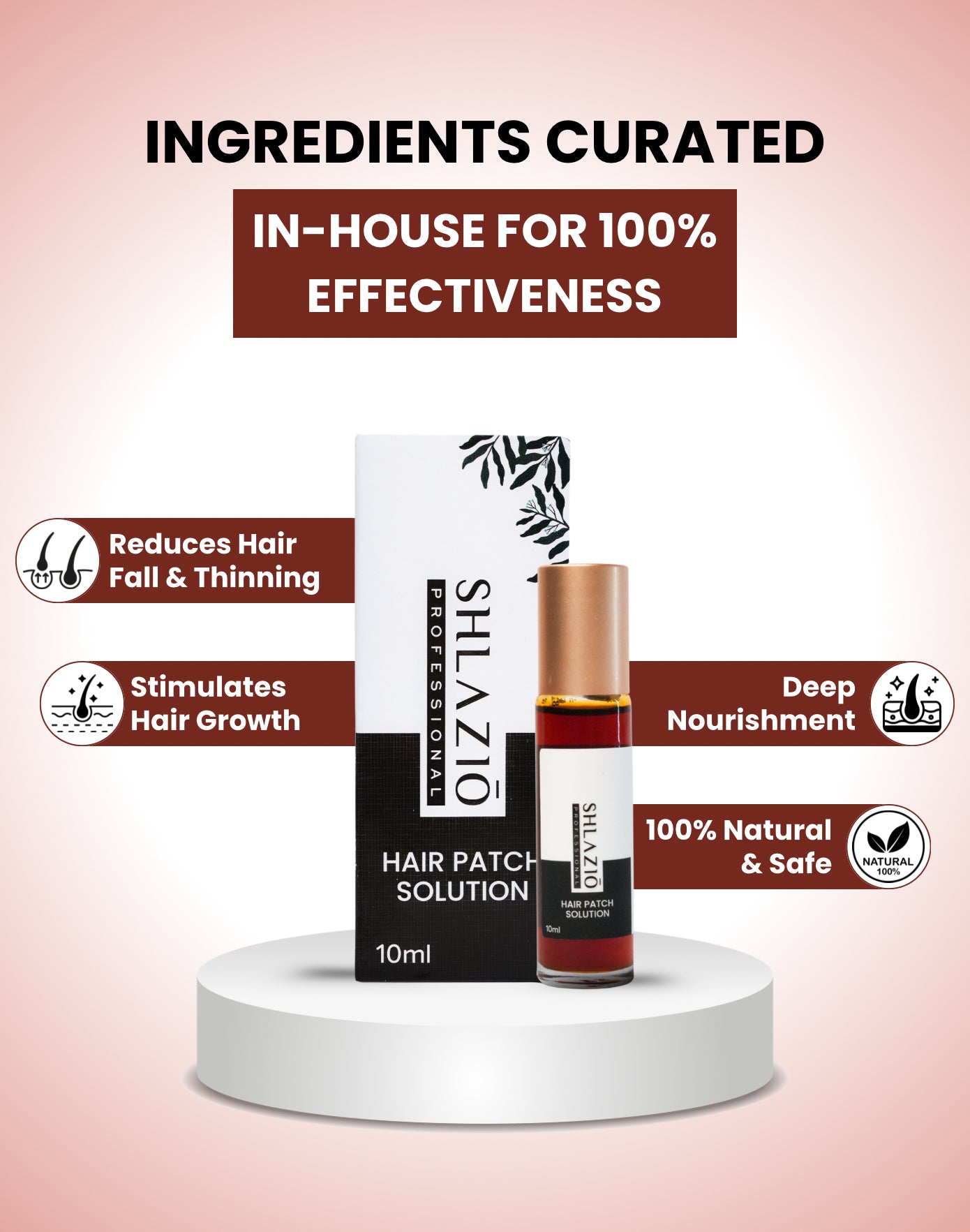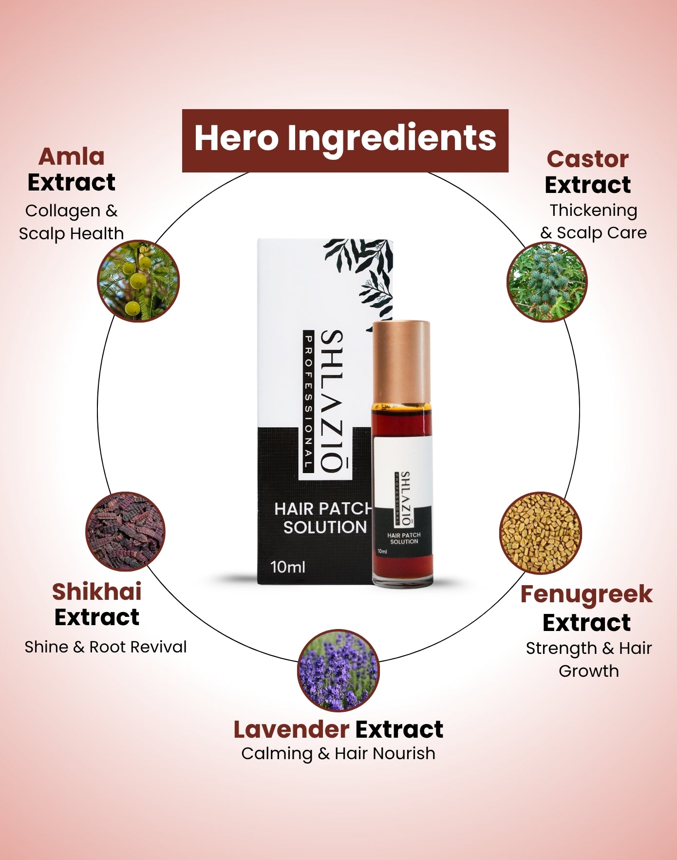 Infused with potent Ayurvedic oils and herbs, Shlazio hair patch roll on works deep at the root to restore balance, encourage growth, and bring back your hair’s vitality.